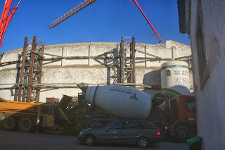 Na Rua do Raimundo, em Évora, existiu em tempo que já não conheci uma arena. Ao passar por ali, em 4 de Fevereiro, pareceu-me que aquela grande parede branca arredondada devia ser uma arena e perguntei a um rapaz das obras, homem dos seus vinte e cinco anos. Ele sabia. O espaço foi uma arena. A toponímia de Évora regista no seu elenco a Rua dos Touros, entre a Rua do Raimundo e a Rua Bernardo de Matos, perto e do mesmo lado do edifício em obras.