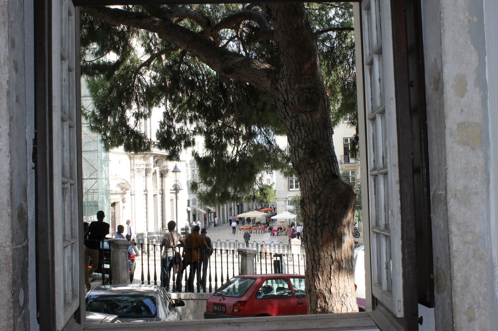 carro e ali estavam, ainda, à frente da sede da Confraria da Moenga— Avenida D. Sebastião, as pessoas do