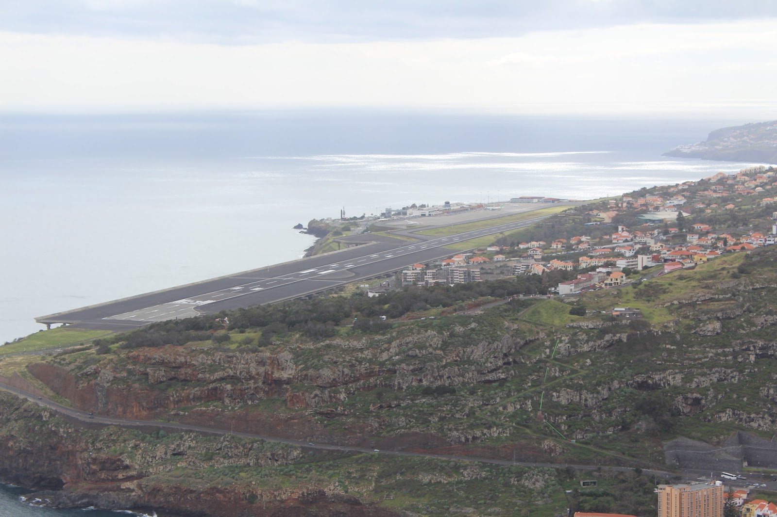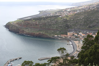 a baía de Machico e o Aeroporto da Madeira, ali ao dobrar da «esquina» de
