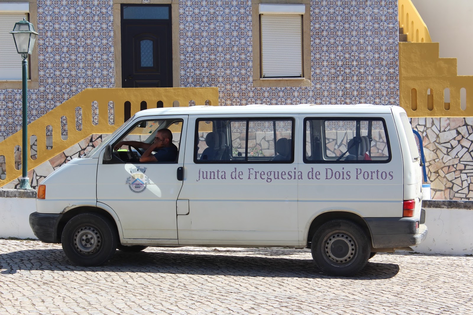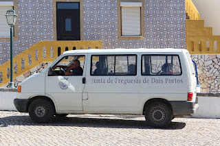 Em frente, mais ou menos a meio da imagem, a igreja de S. Pedro, de Dois Portos.