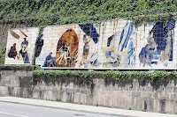 painel de Júlio Resende, Ribeira Negra, à entrada do túnel que nos deixa