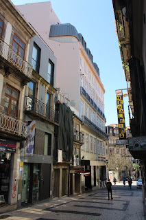 O edifício de A Brasileira, ao fundo, visto da confluência da Rua de Sá da Bandeira, com a 31 de Janeiro, muito perto da estação de São Bento