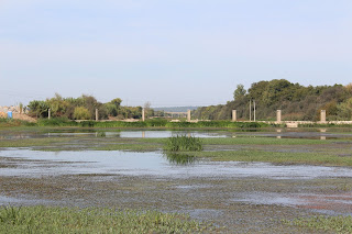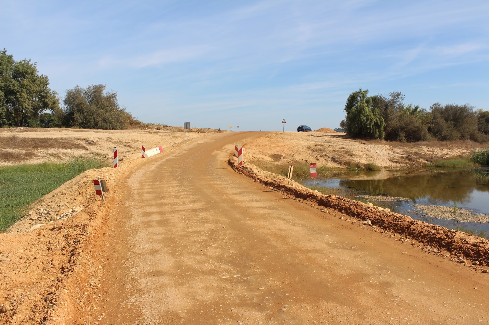 [As primeiras três fotografias são de 23 Set.: a passagem de terra batida e vista da ponte em construção; de hoje: a seguinte, confluência dos dois rios; mais duas, do rio Sor, e a última, do Raia.