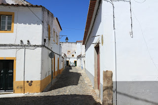 O expresso deixou-me na central rodoviária, ao meio da manhã. Já com muito sol, vai-se junto ao muro branco do cemitério, noutros dias logradouro do Convento dos Remédios. Passamos ao lado da Escola de Música e dum espaço de exposições, neste momento dedicado a Évora, entre os séculos VII a XII. YÁBURA: Uma cidade do Al-Andalus. A seguir, a igreja de Nossa Senhora dos Remédios.
