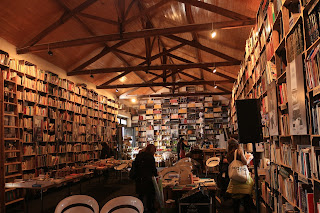 Já no regresso a Torres Vedras, passámos pelos Casais Brancos, fronteiro a Óbidos, do outro lado da auto-estrada e de onde se mira esta vila histórica. Deixei-me conduzir, pois ignorava que uma das livrarias associadas à aventura literária liderada pela LER DEVAGAR estivesse fora de Óbidos. A Histórias com Bicho é um lugar muito especial. Percebe-se, mesmo sem ainda lá se ter entrado. É na antiga escola primária, construção do plano dos Centenários, agora desactivada e aproveitada para actividades que tornam o espaço digno herdeiro na tarefa de ajudar a fazer gente.
